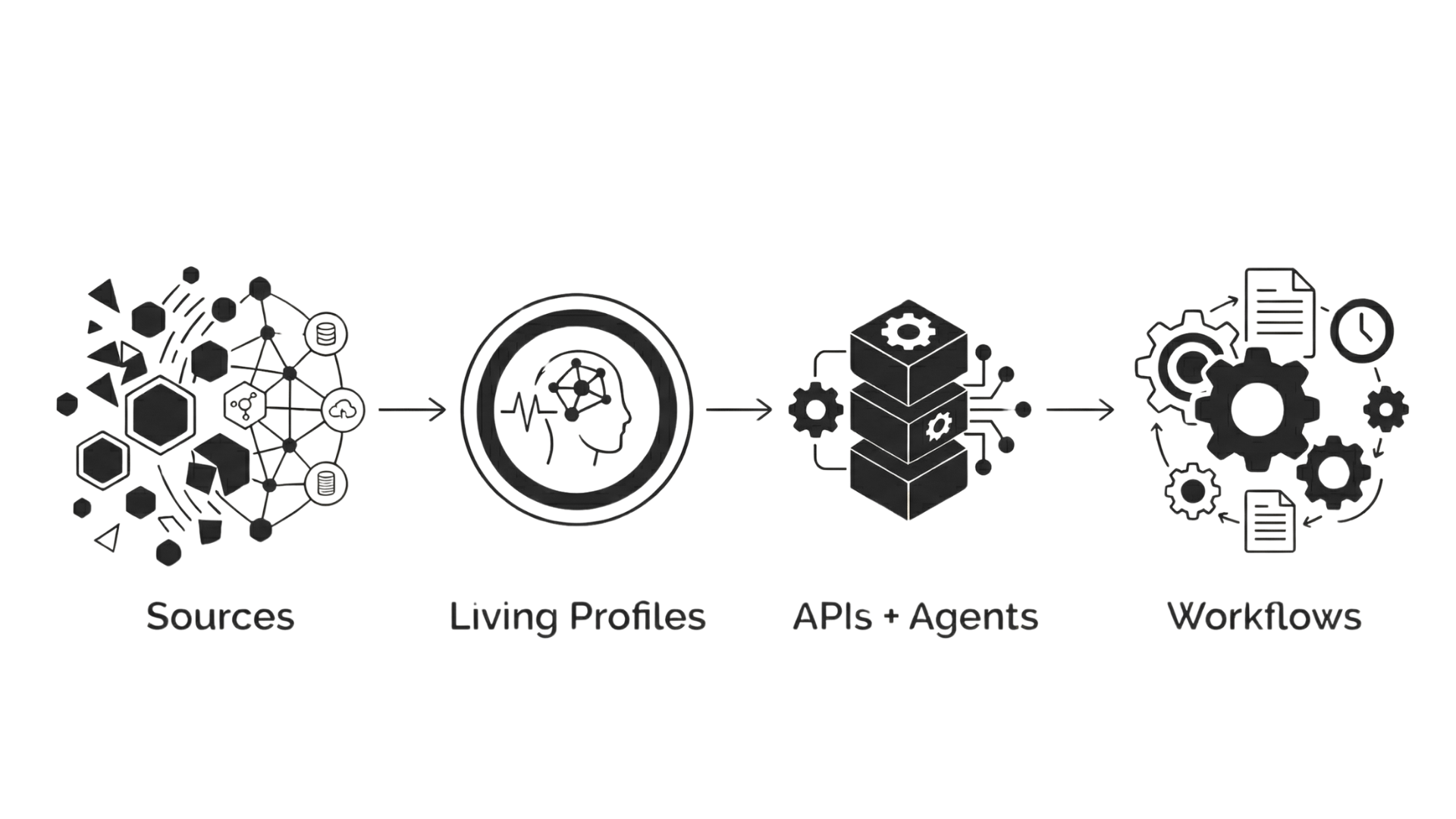 We unify fragmented first- and third-party people and company data into living profiles with citations to refreshed sources, so agents can act accurately and safely across high-stakes workflows.