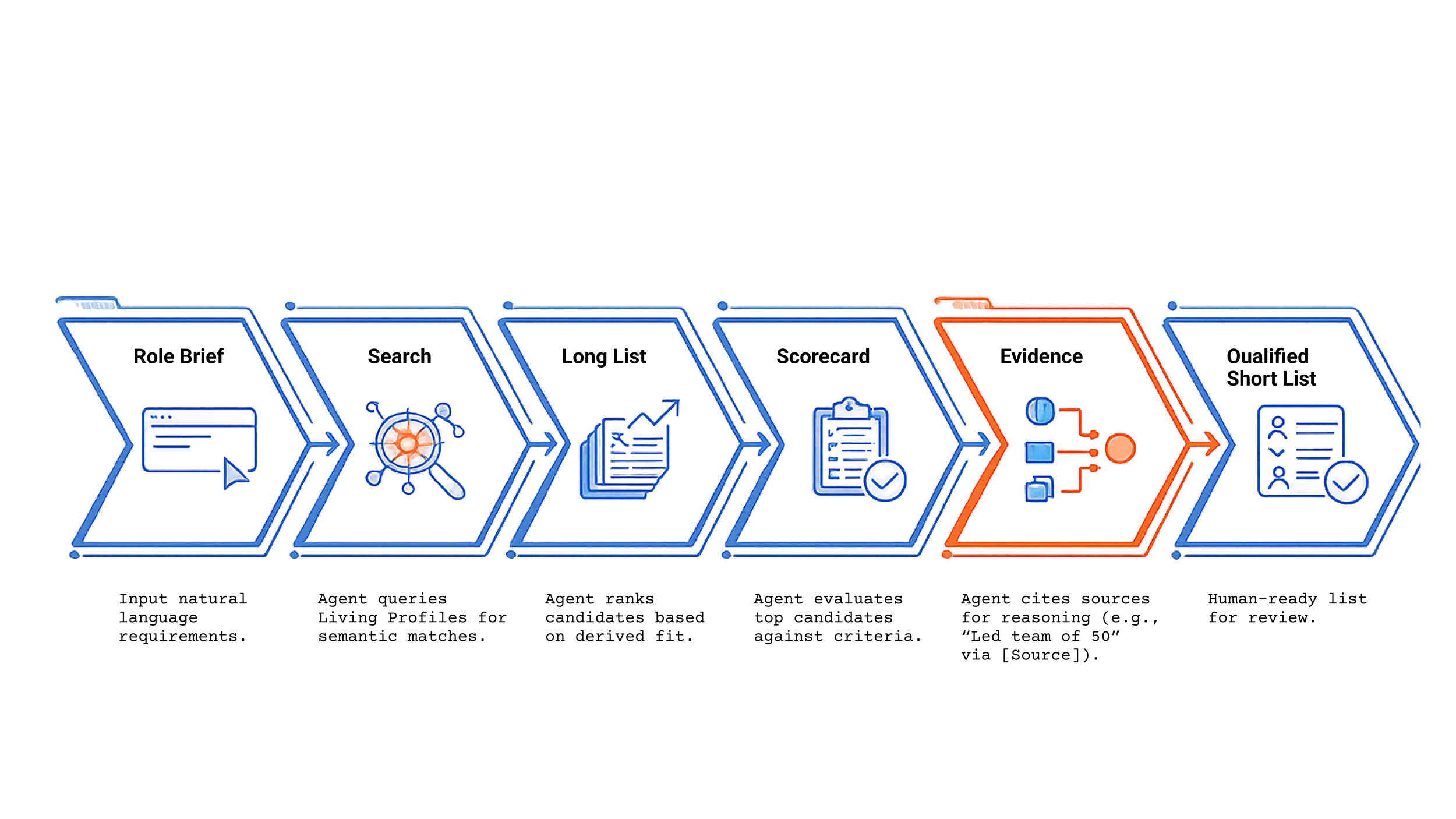 Unify LinkedIn, ATS/CRM, and internal docs into living profiles with provenance and freshness, then generate shortlists with evidence you can share.
